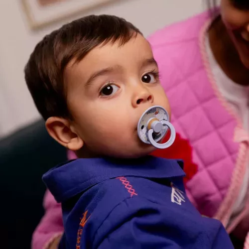 A cumi kialakításának köszönhetően, a kifelé ívelő cumipajzs nem nyomja csöppséged száját vagy állát.