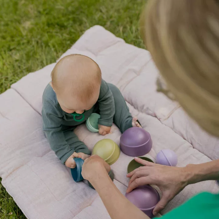 - Mosogatógépben tisztítható. (Csak az építő tálkák, a csörgő játék nem!)