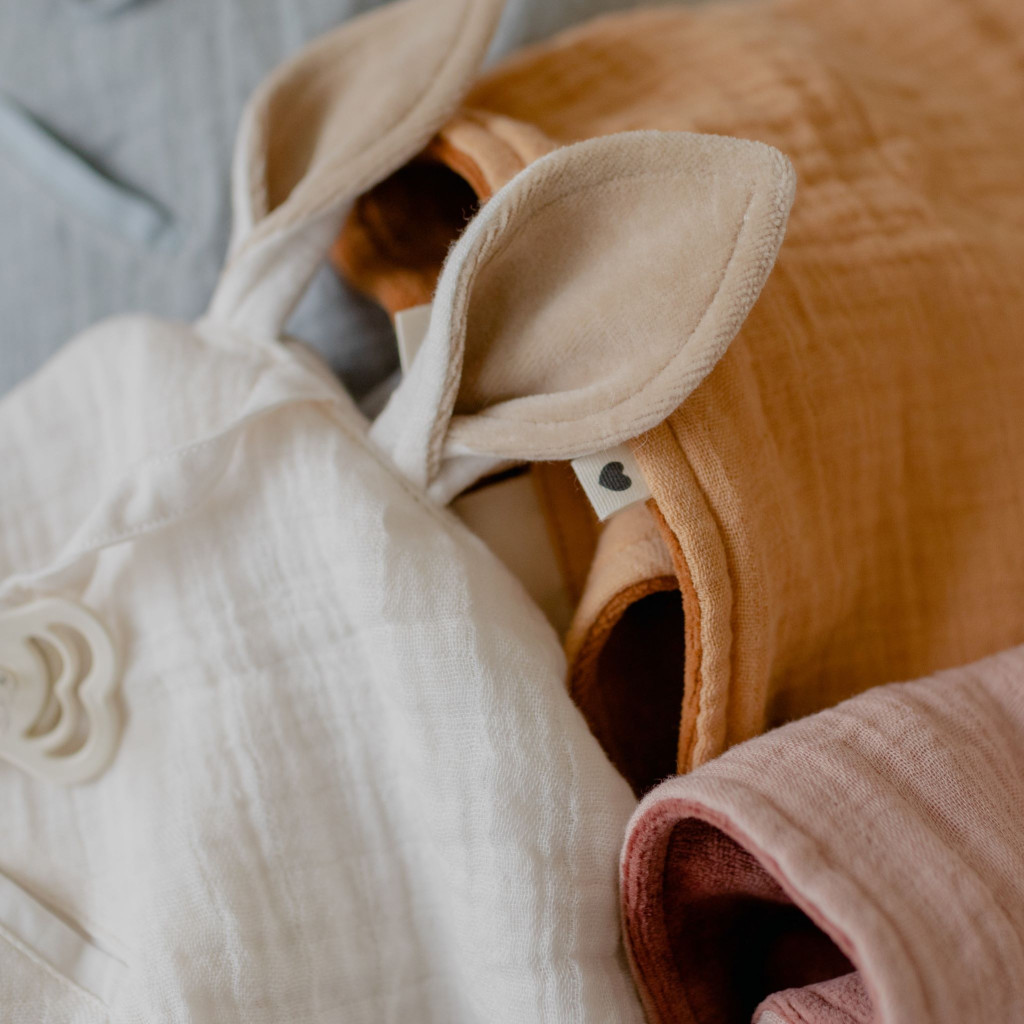 - A kedves kenguru fülek mellett az alvókendő cumitartó zsebbel és lánccal rendelkezik
