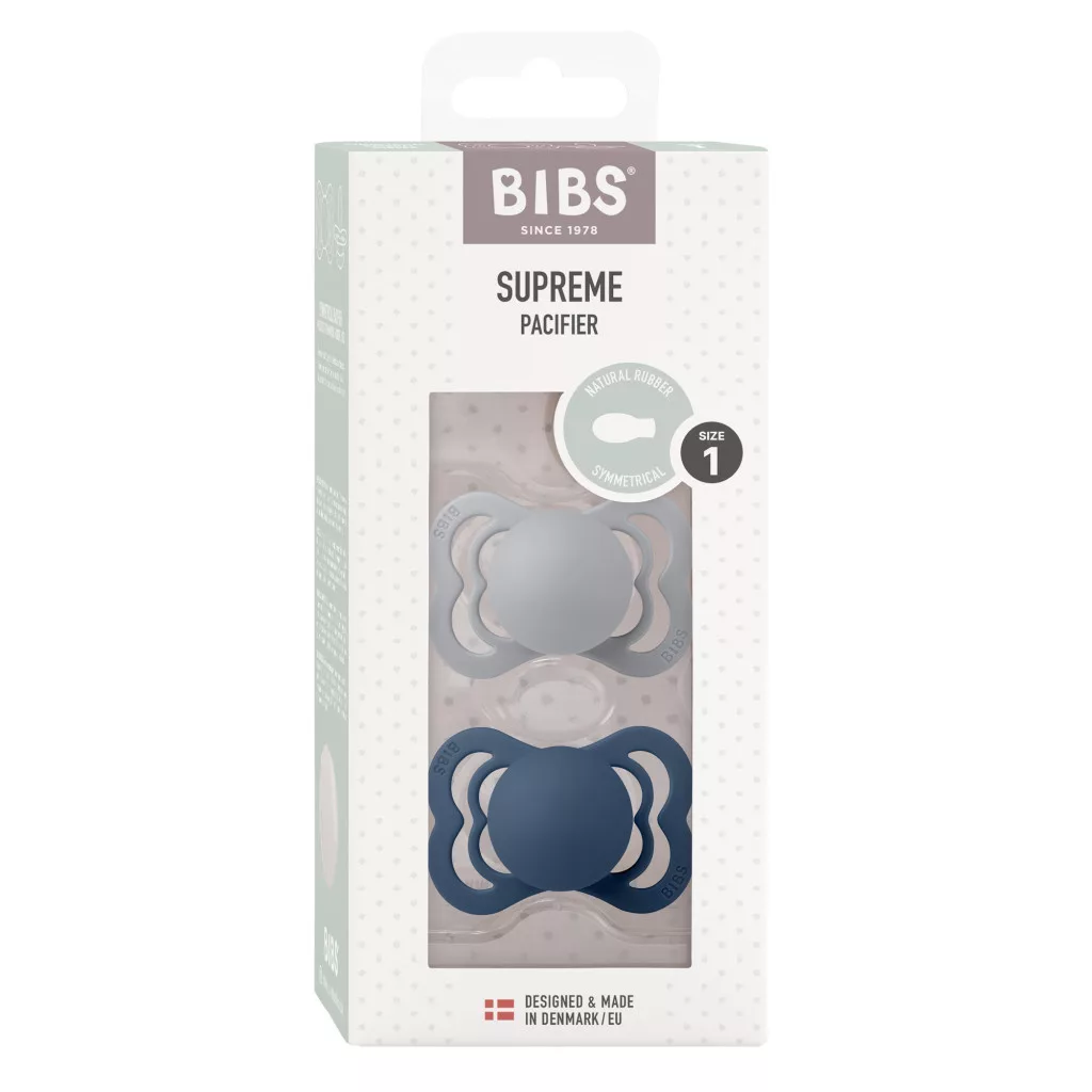 A cumifej és a cumipajzs szimmetrikus kialakításának köszönhetően, kisbabád mindig helyesen tartja szájában a BIBS Supreme cumit.