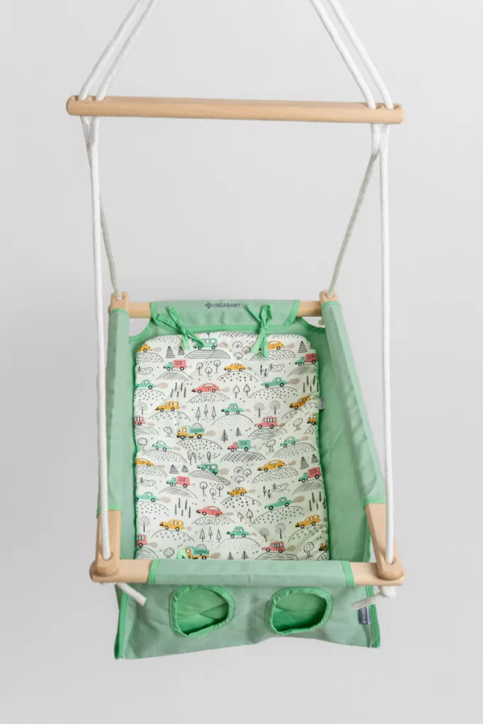 Špeciálna interiérová detská hojdačka, v ktorej môže dieťa relaxovať v ležiacej polohe a hrať sa v sede. Spolu s pružinou sa môže dieťa kolísať nielen nabok, ale aj hore a dole.