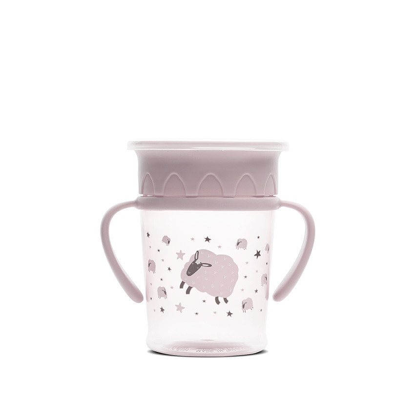 - Vďaka 360° dizajnu je úplne zabránené vytečeniu a dieťa môže piť z ktorejkoľvek strany pohára.
