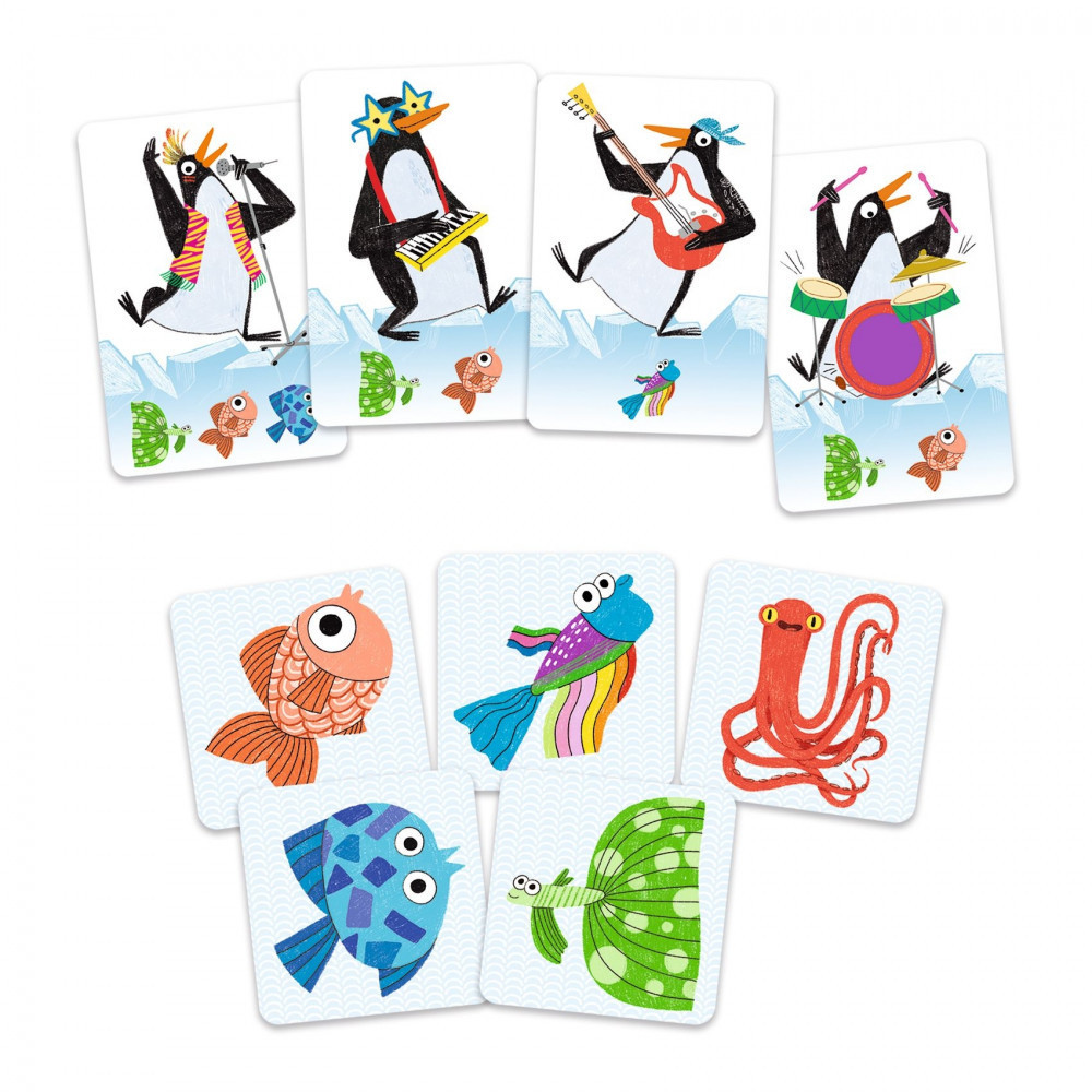 - Hudobný festival je za dverami! Úlohou hráčov je zostaviť kapelu so 4 rôznymi hudobníkmi. Najprv ale musíte chytiť ich obľúbenú rybu, aby ste ich nalákali! V tejto hre sa víťazom stáva ten, kto vytvorí svoju kapelu so štyrmi rôznymi hudobníkmi: 1 bubeník, 1 basgitarista, 1 spevák a 1 klávesista.