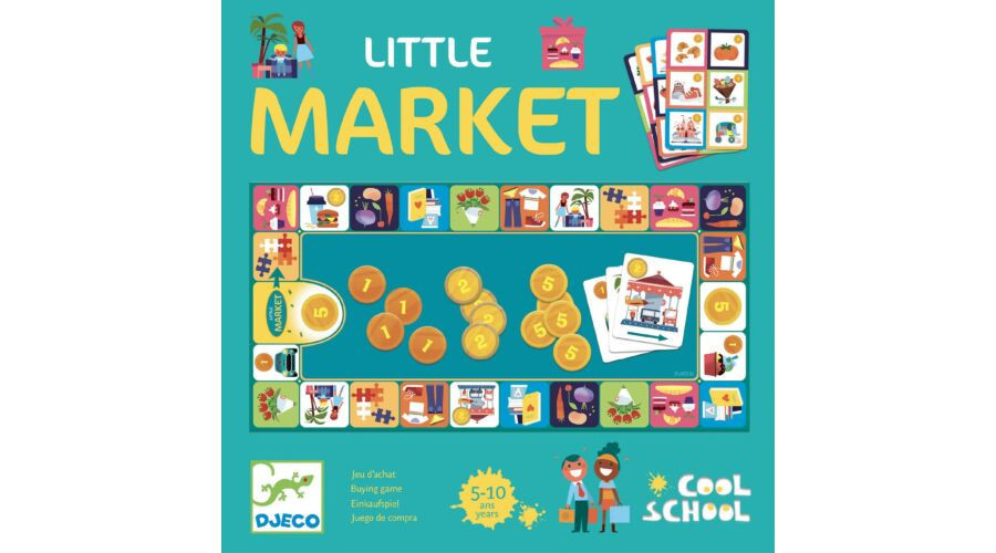 - Obsah hry: 1 herná doska, 4 figúrky, 4 nákupné zoznamy, 1 kocka, 26 akčných kariet, 32 žetónov peňazí (10 x 1 €, 10 x 2 €, 12 x 5 €) + 24 žetónov s nákupnou taškou.